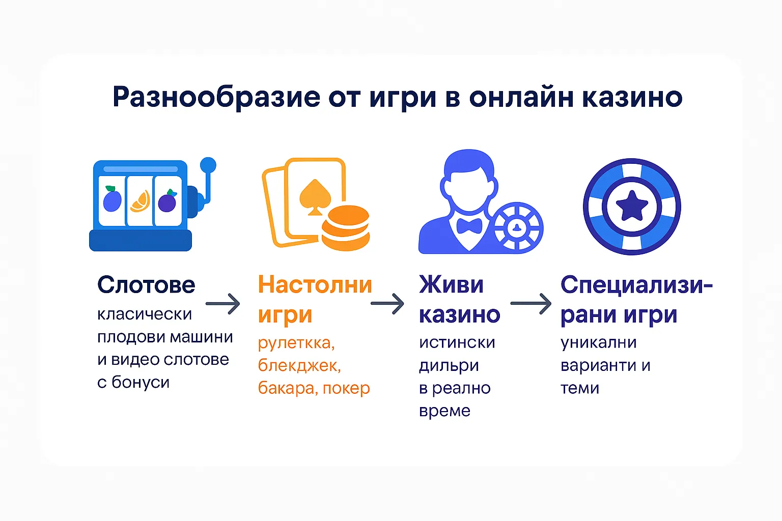| Онлайн казино България | Местна поддръжка, лиценз от НАП, локални бонуси | Слотове, покер, рулетка | EasyPay, ePay.bg, Skrill |